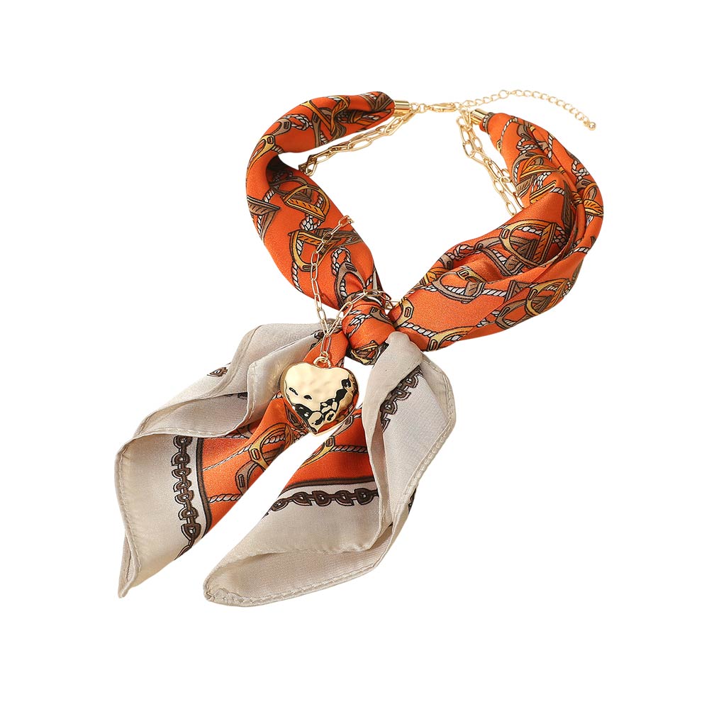 • This chain detail scarf necklace blends a soft draped scarf with a linked accent and heart charm for a refined statement look. Designed to wear as a necklace, it adds effortless polish to casual and dressy outfits, making it a versatile accessory for everyday styling and elevated fashion collections.