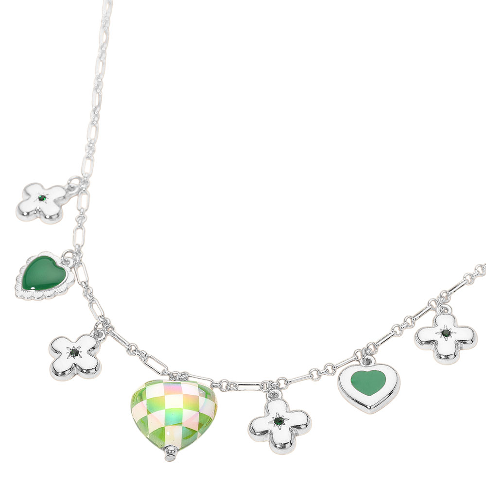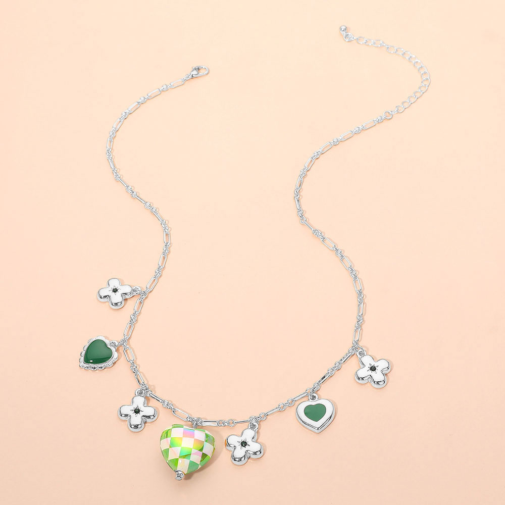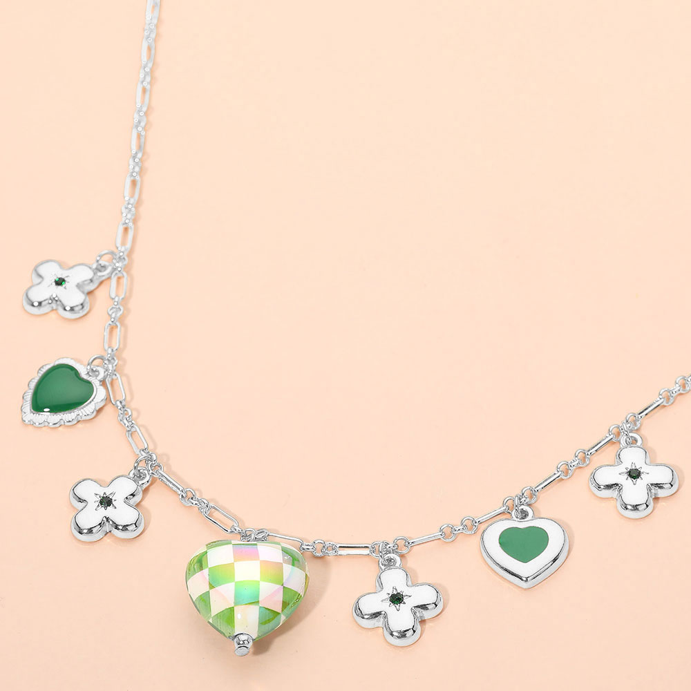 Heart Flower Motif Charm Staton Necklace Heart Flower Motif Charm Staton Necklace Heart Flower Motif Charm Staton Necklace