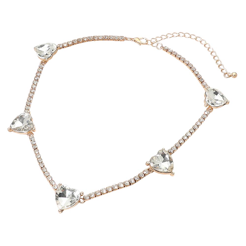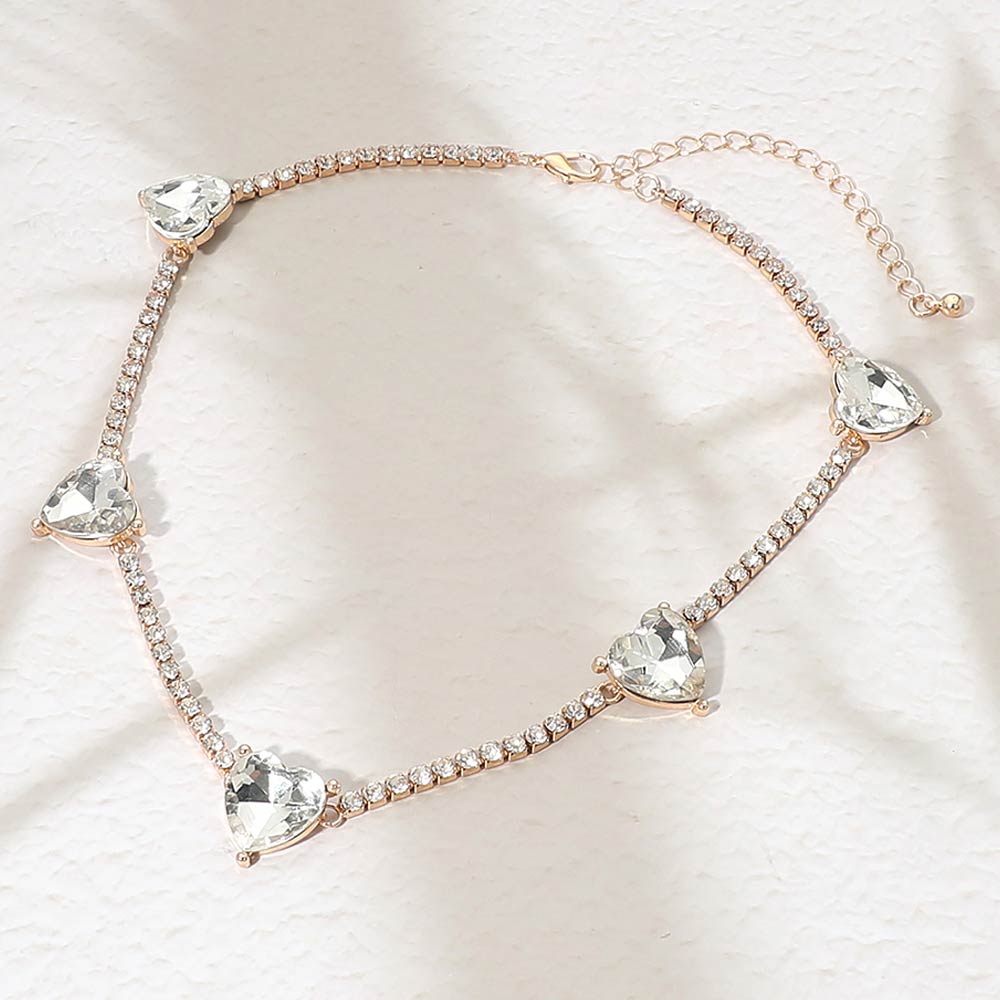 Heart Stone Cluster Station Tennis Chain Necklace Heart Stone Cluster Station Tennis Chain Necklace