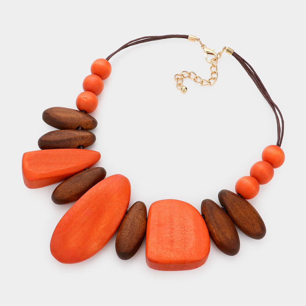 Marbled Bead Wood Ball Collar Toggle Necklace