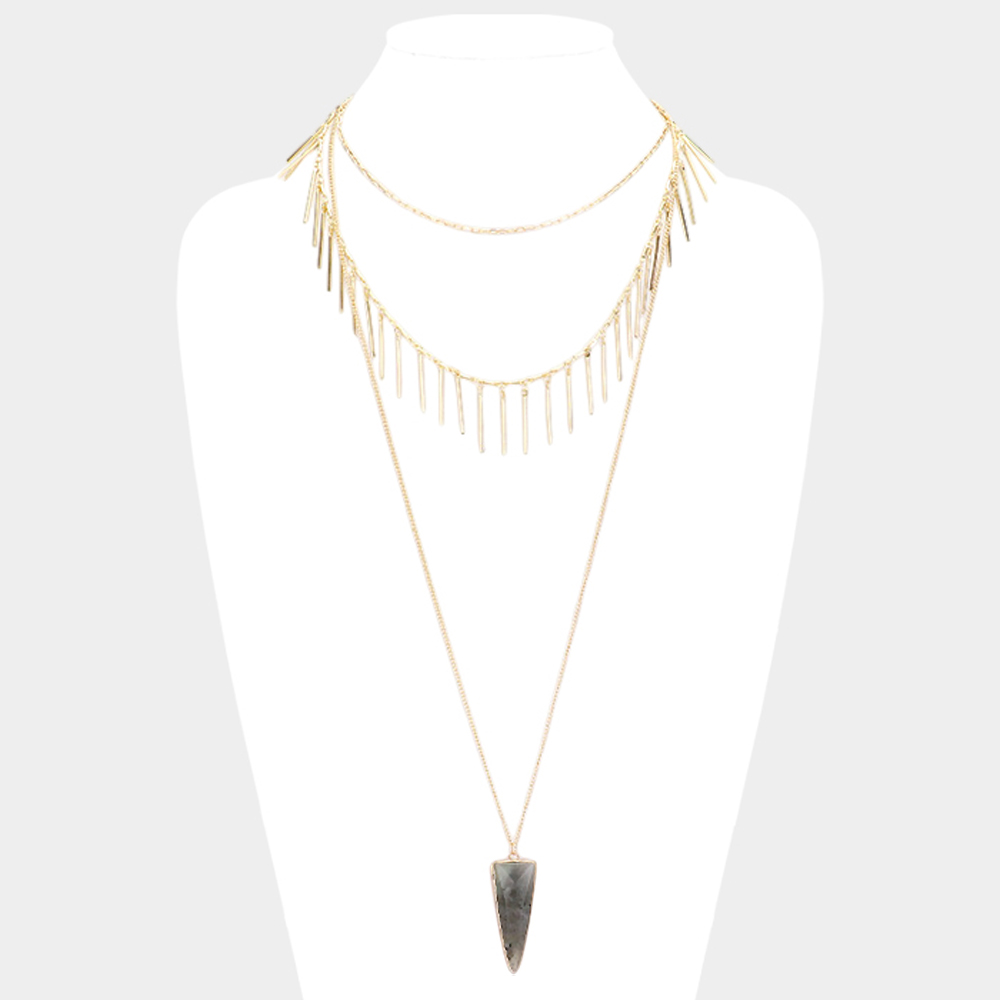 Layered Natural Stone Pendant Necklace