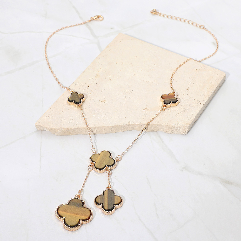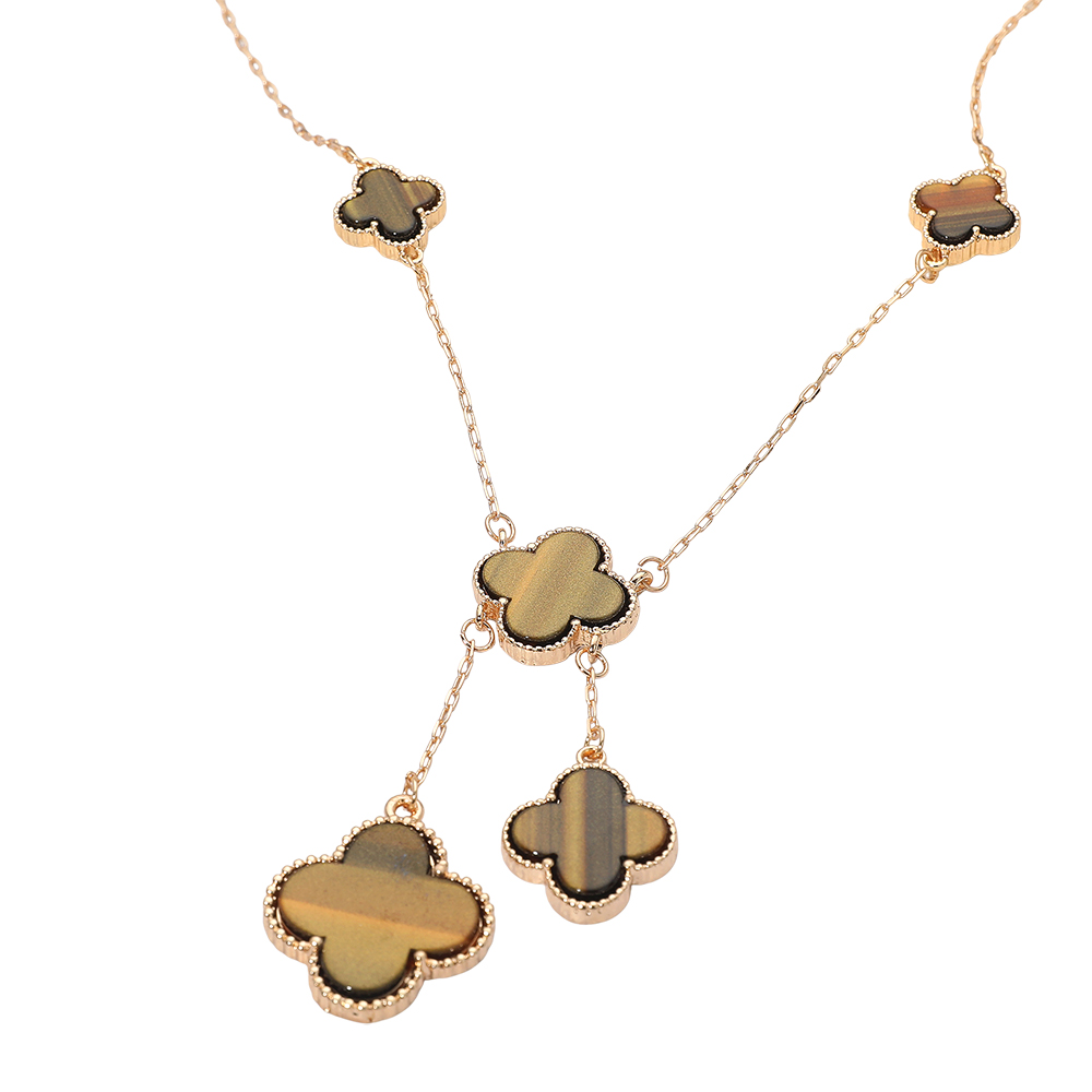 • Stylish necklace featuring multiple quatrefoil pendants in a cascading layered design. The elegant drop detail adds movement and sophistication, making it perfect for both casual and formal wear, offering a timeless charm that enhances any outfit effortlessly.