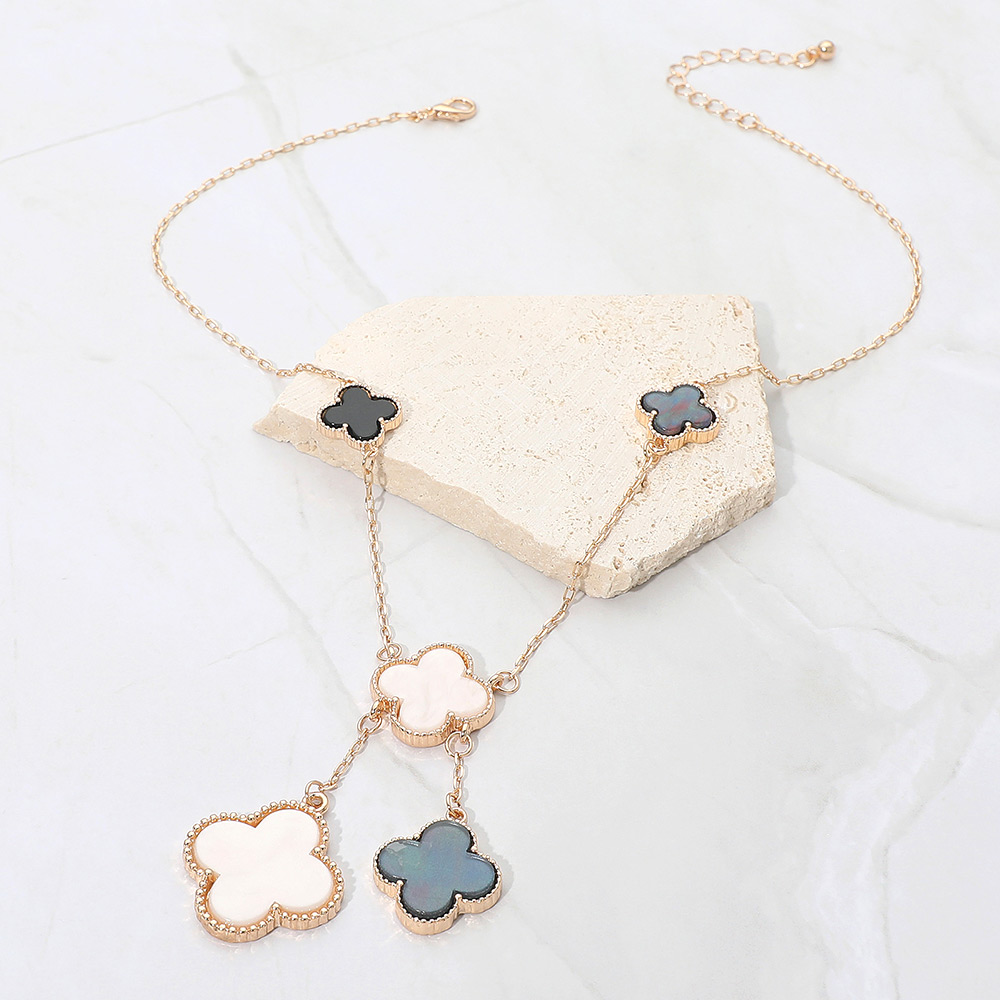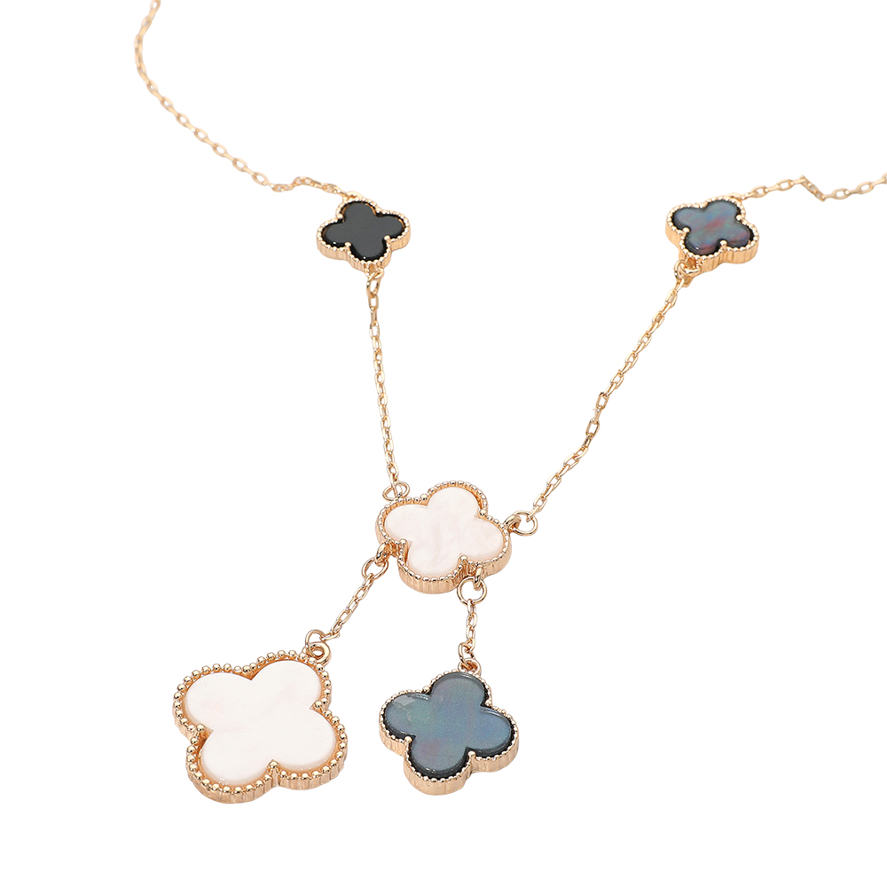 • Stylish necklace featuring multiple quatrefoil pendants in a cascading layered design. The elegant drop detail adds movement and sophistication, making it perfect for both casual and formal wear, offering a timeless charm that enhances any outfit effortlessly.