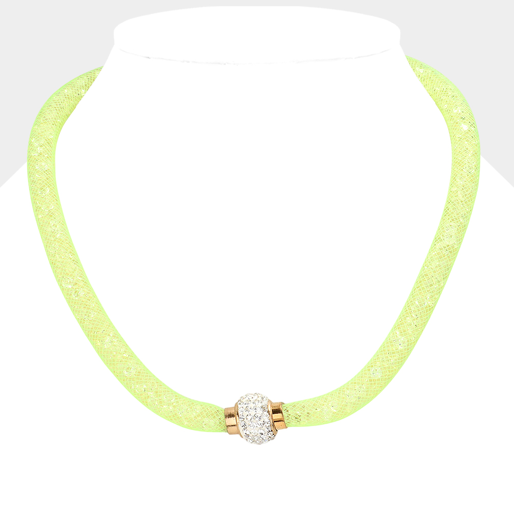 White Gold Dipped Brass Metal Round Colorful CZ Station Necklace