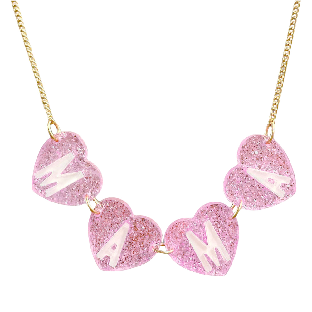 Double Heart Teddy Bear Postcard Charm Pendant Necklace