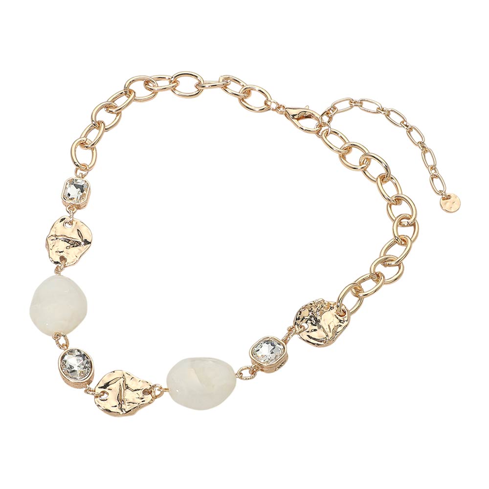 Marbled Resin Pebble Hammered Metal Plate Stone Cluster Link Necklace