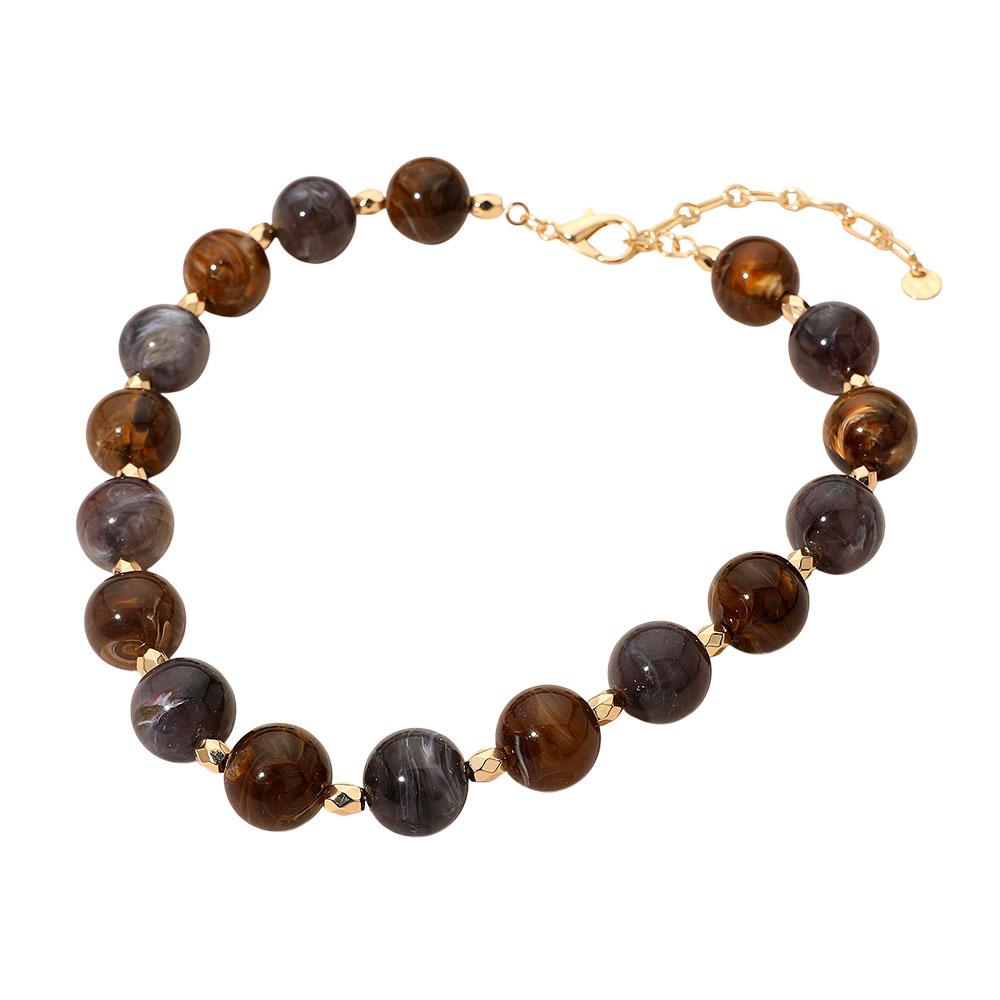 Marbled Round Faceted Metal Beaded Necklace