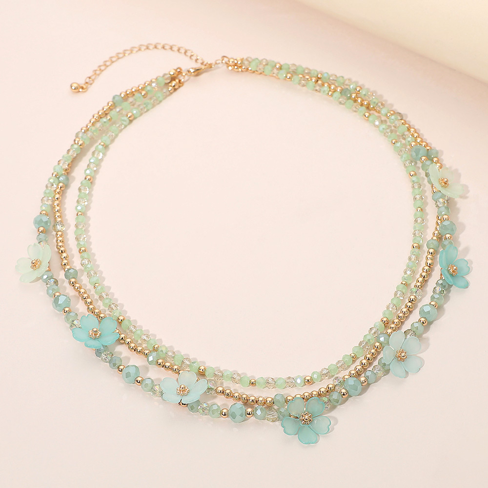 • Embrace elegance with this layered floral beaded necklace. Featuring delicate multi-strand design with shimmering beads and petite flower accents, it adds a playful yet refined touch to any ensemble—perfect for both casual charm and special occasions.