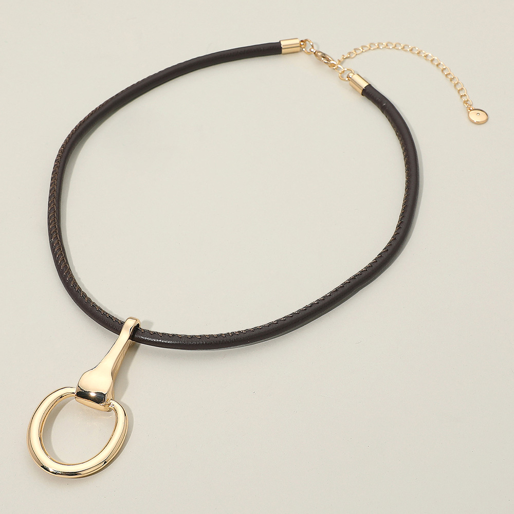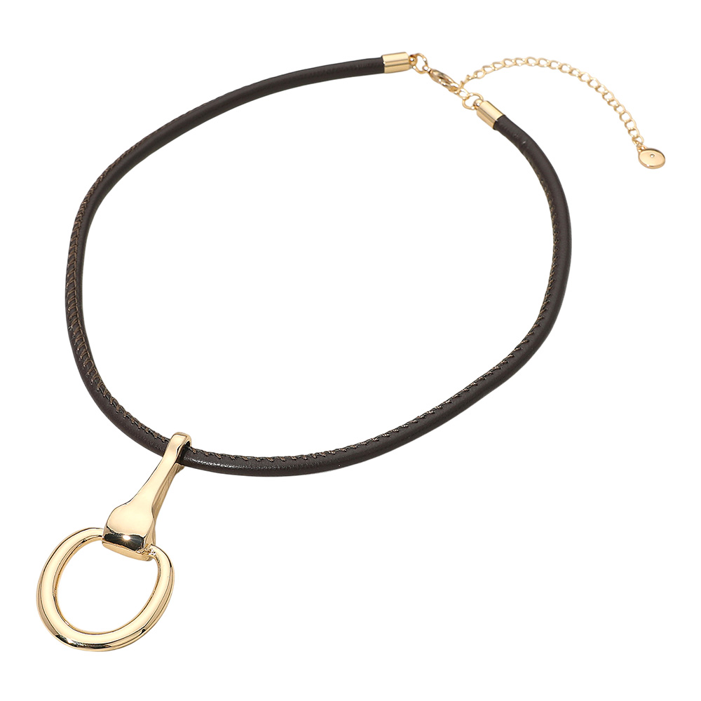 Metal Horsebit Pendant Faux Leather Cord Necklace Metal Horsebit Pendant Faux Leather Cord Necklace