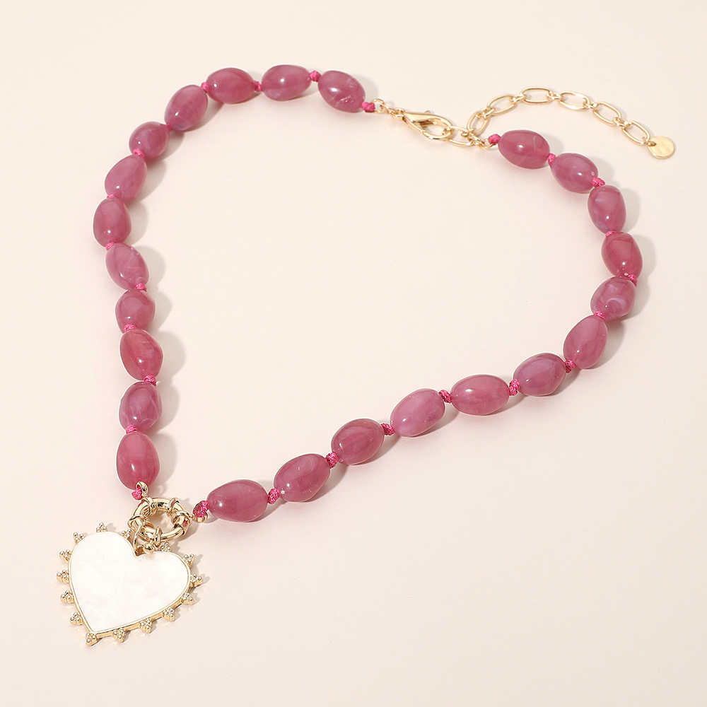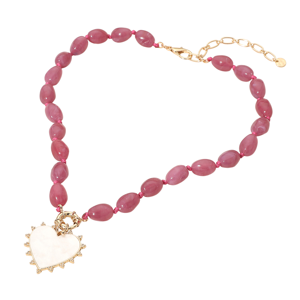 • Elegant beaded necklace designed with marbled beads and a statement heart pendant charm. A fashionable accessory perfect for everyday wear or special occasions, adding romantic charm and a unique finishing touch.