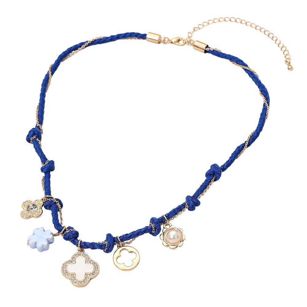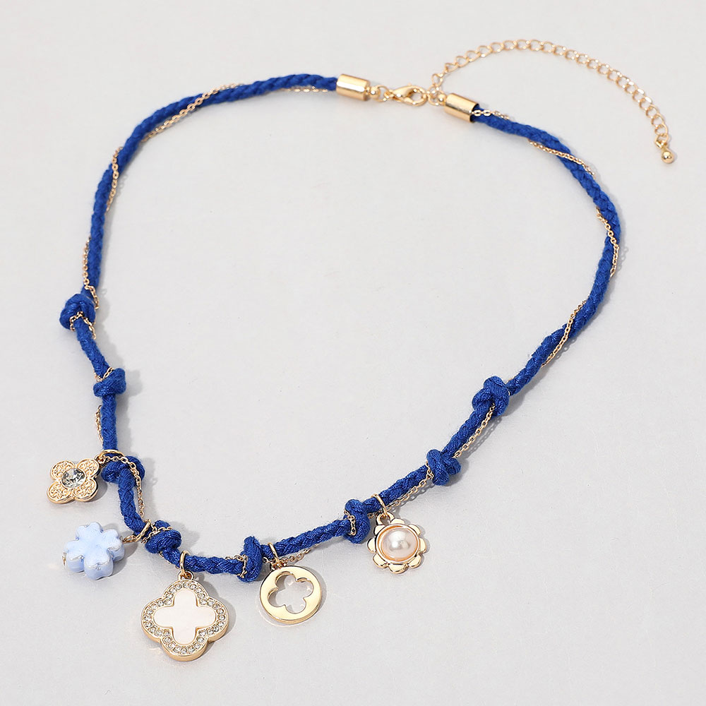 Mother of Pearl Quatrefoil Ceramic Flower Charm Station Braid Chain Wrap Necklace Mother of Pearl Quatrefoil Ceramic Flower Charm Station Braid Chain Wrap Necklace