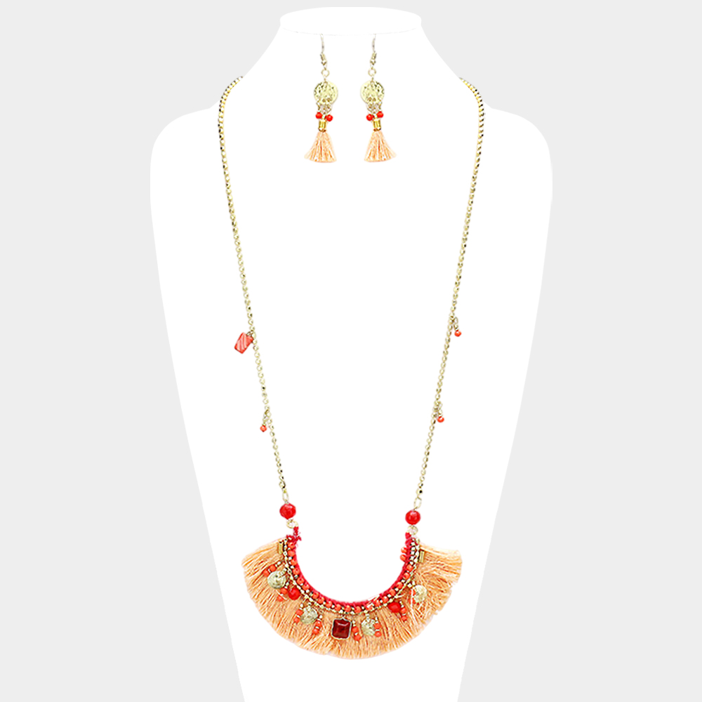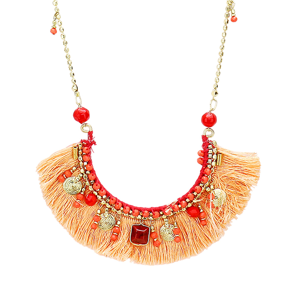 Geometric Open Metal Pendant Faceted Beaded Necklace