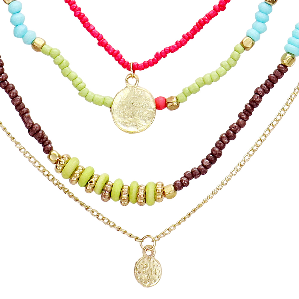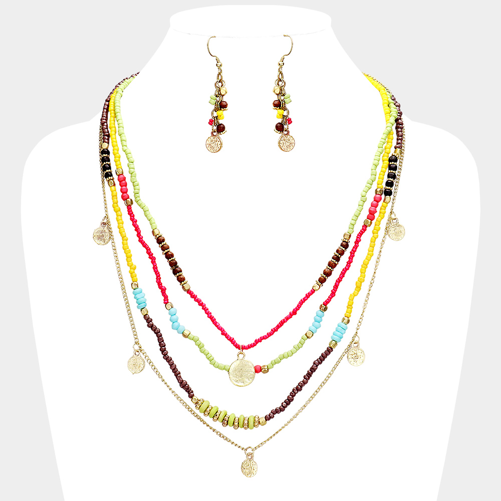 Metal Evil Eye Pendant Faceted Beaded Necklace