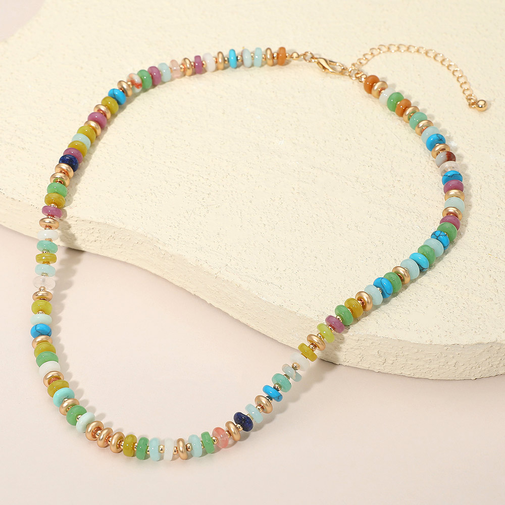 Details • Necklace Size : 16" + 3" L • Decor Size : 0.25" L • Playful multi beaded necklace featuring colorful round beads arranged in a vibrant pattern. Lightweight with an adjustable chain for a perfect fit, this necklace adds a fun pop of style to casual and chic outfits. A versatile jewelry piece ideal for layering or wearing solo. • Lead and Nickel Compliant