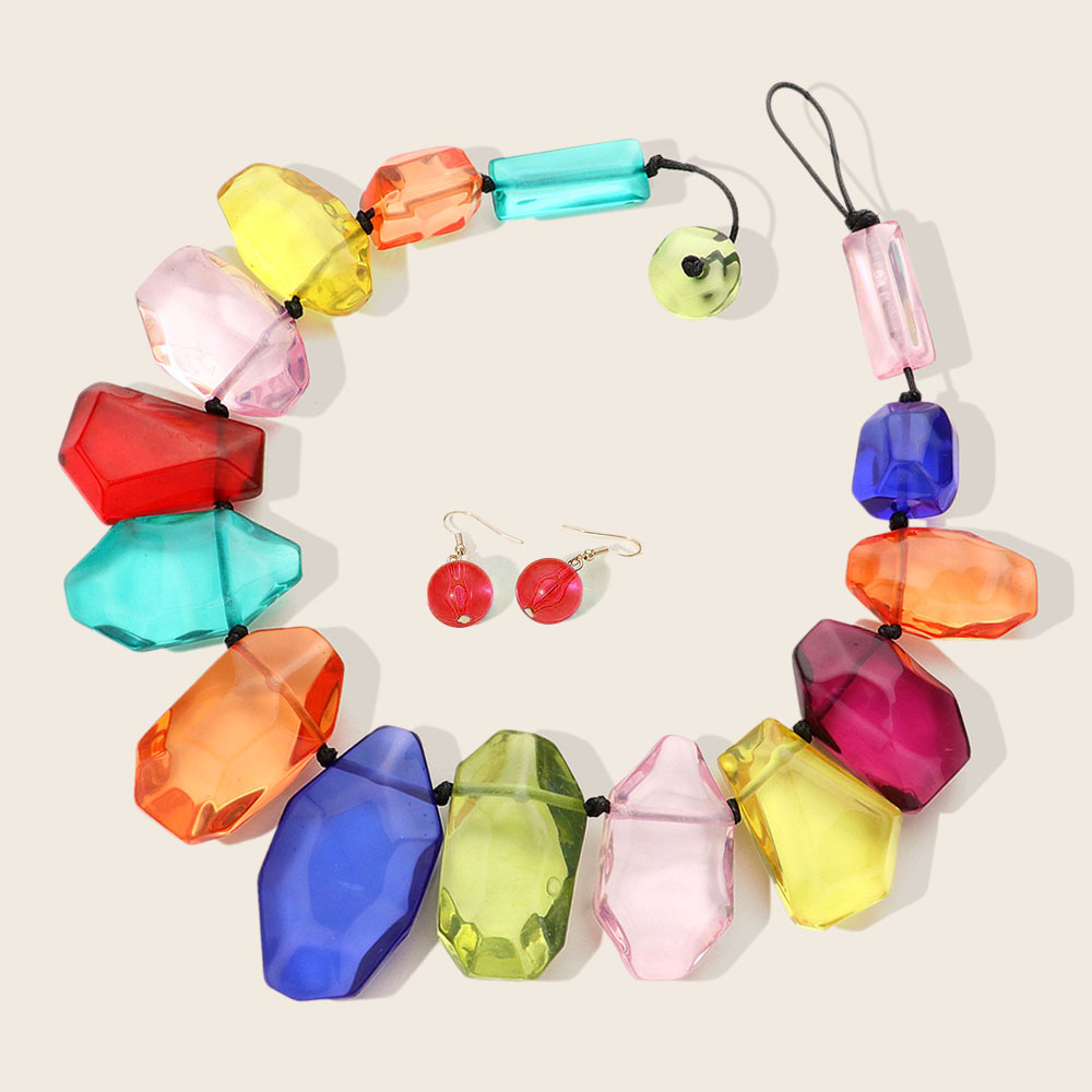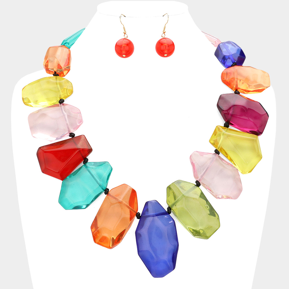 Multi Shaped Acrylic Rock Beaded Statement Necklace