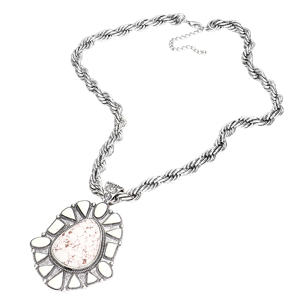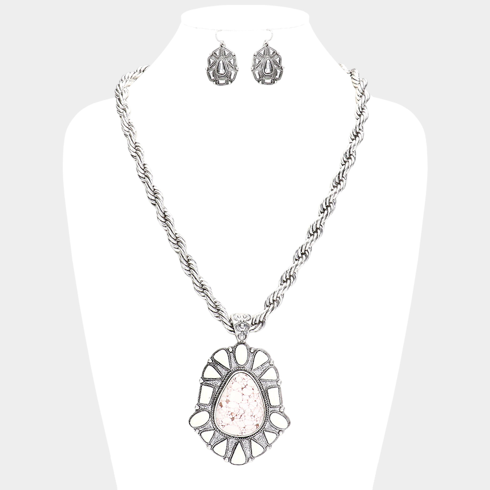 Teardrop Stone Pointed Pearl Rhinestone Paved Necklace
