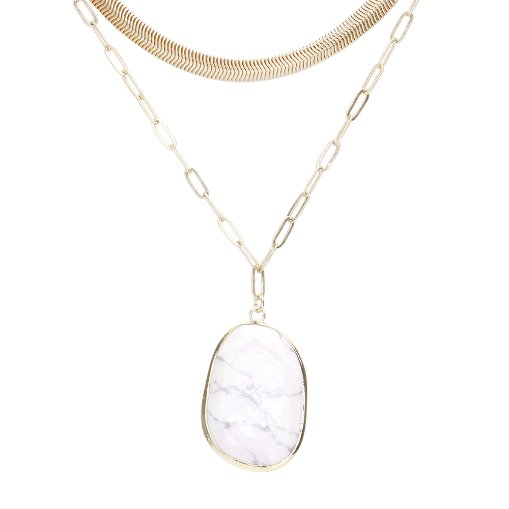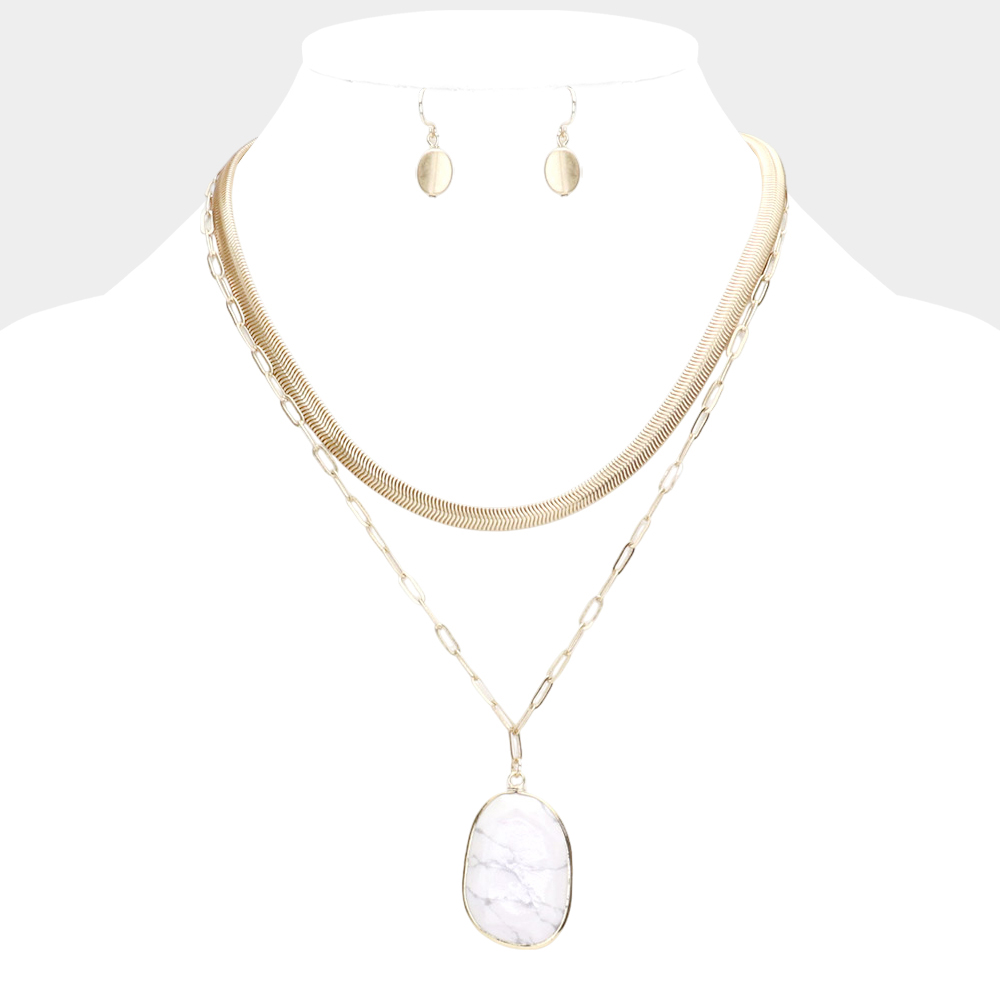 Natural Stone Pendant Double Layered Necklace