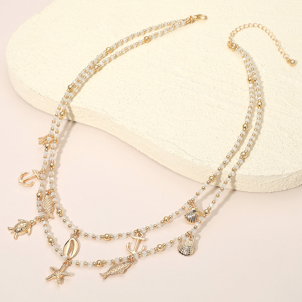 Ocean Inspired Charm Faceted Beaded Double Layered Necklace Ocean Inspired Charm Faceted Beaded Double Layered Necklace Ocean Inspired Charm Faceted Beaded Double Layered Necklace
