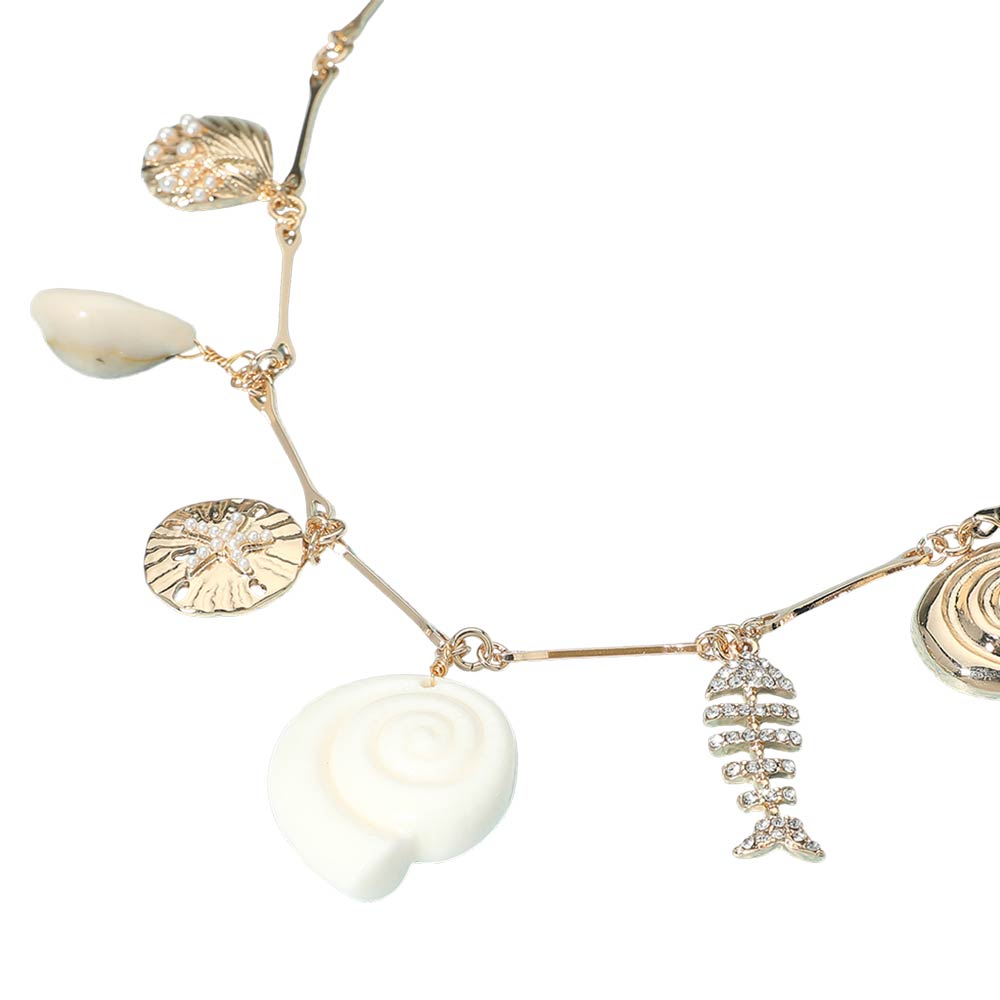 Details • Necklace Size : 18" + 3.5" L • Decor Size : 1.5" L • This ocean charm necklace features a curated mix of coastal-inspired pendants arranged along a delicate chain for a playful yet refined look. Designed to stand out in resort, vacation, and everyday collections, it offers strong visual appeal and easy styling. A statement accessory ideal for boutiques seeking beach-themed jewelry with layered charm detail and giftable versatility. • Lead and Nickel Compliant