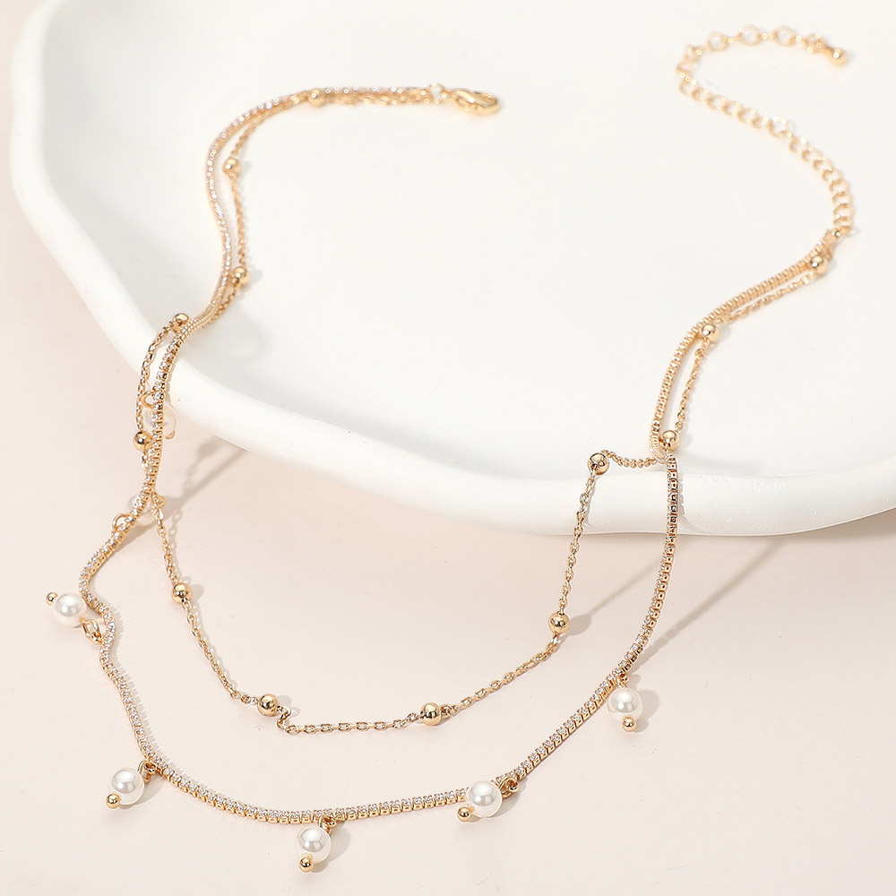 Pearl Bead Accent Double Layered Necklace Pearl Bead Accent Double Layered Necklace Pearl Bead Accent Double Layered Necklace