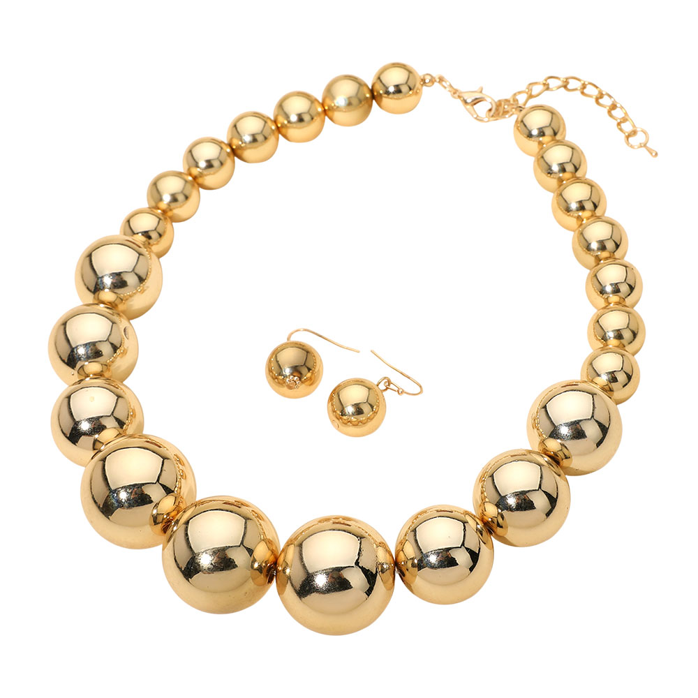 • Elegant graduated bead necklace paired with matching drop earrings for a coordinated, polished look. Designed to create visual balance and timeless appeal, this jewelry set is ideal for statement styling, special occasions, and boutique collections seeking classic silhouettes with versatile, easy-to-wear elegance.