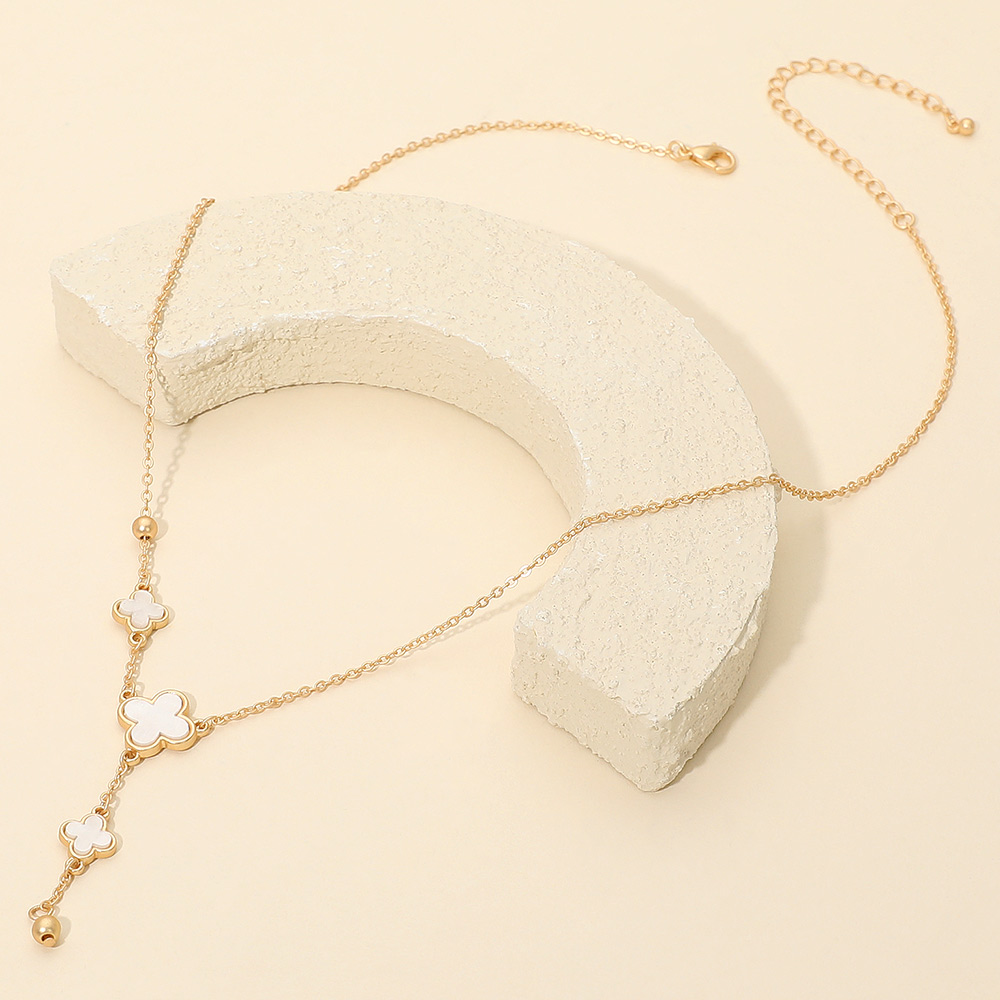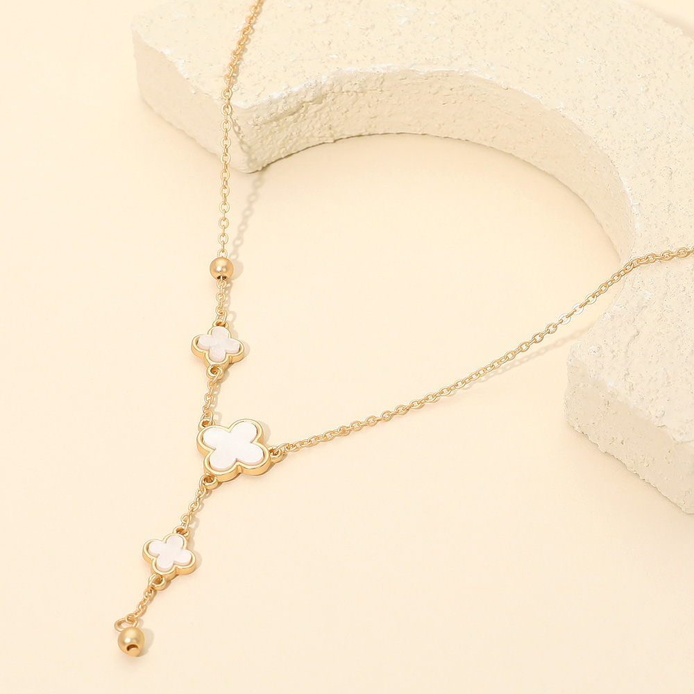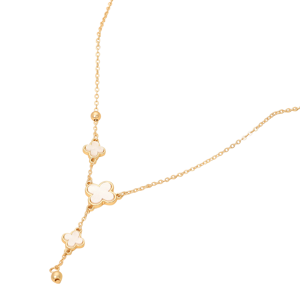 • This elegant quatrefoil charm necklace features a cascading trio of delicate motifs that bring a touch of luck and refinement to any look. Its graceful design adds subtle sophistication, making it perfect for layering or wearing solo as a chic everyday statement.
