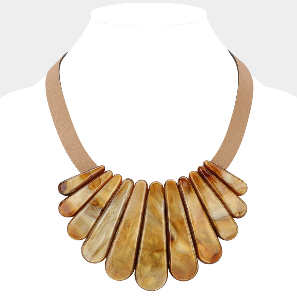 Resin Long Teardrop Plate Faux Leather Statement Necklace Resin Long Teardrop Plate Faux Leather Statement Necklace