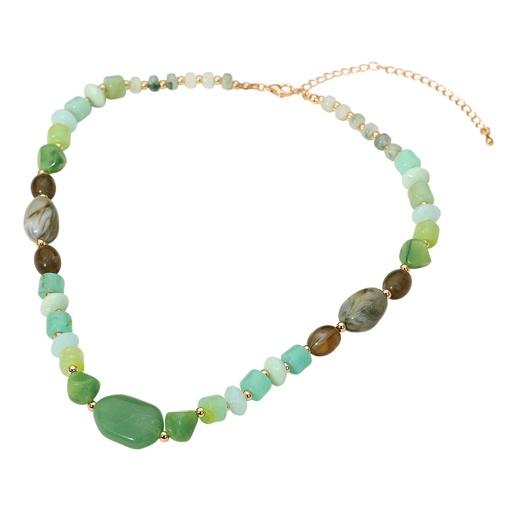 Details • Necklace Size : 15.5" + 3" L • Decor Size : 0.6" L • This beaded statement necklace showcases a mix of unique shapes and textures for an elegant and artistic look. Designed to elevate any outfit, it blends sophistication with modern charm, making it a versatile accessory that transitions seamlessly from day to evening style. • Lead and Nickel Compliant
