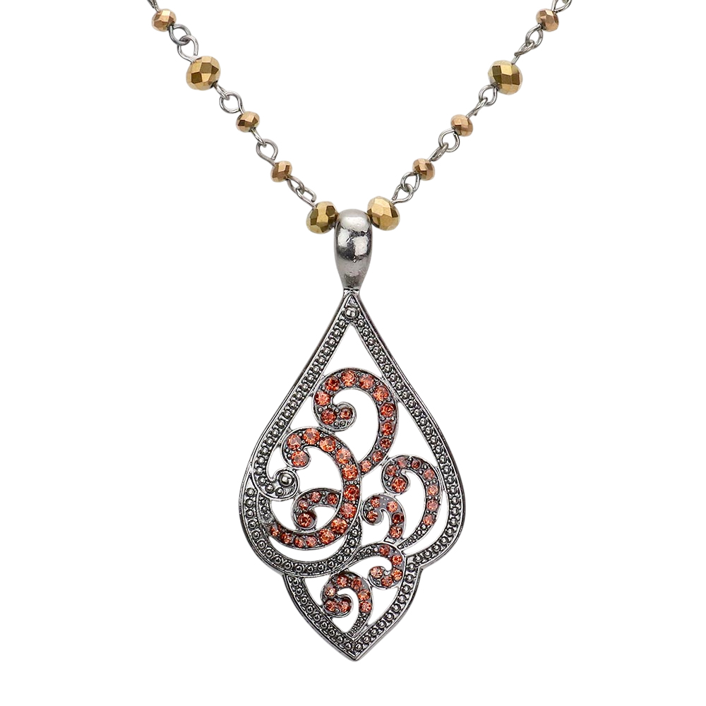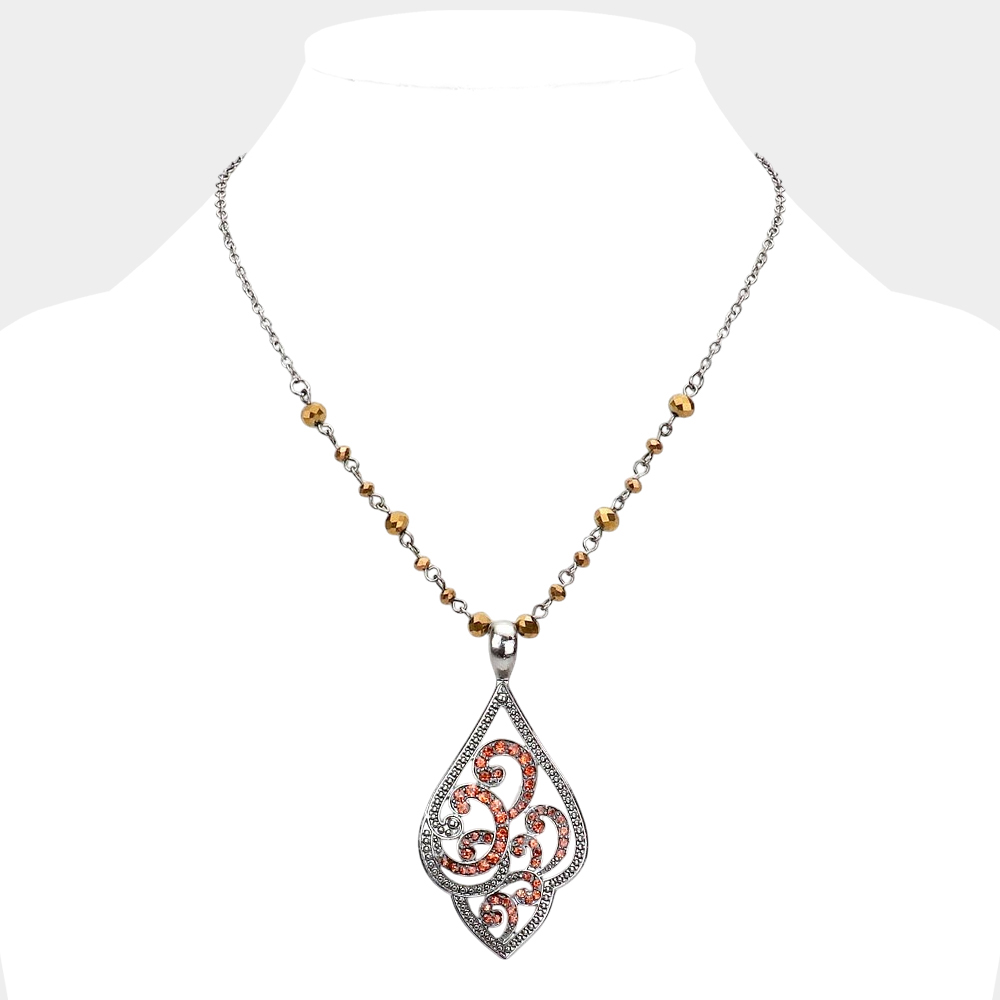 Rhinestone Embellished Metal Petal Pendant Necklace