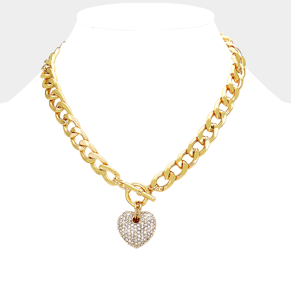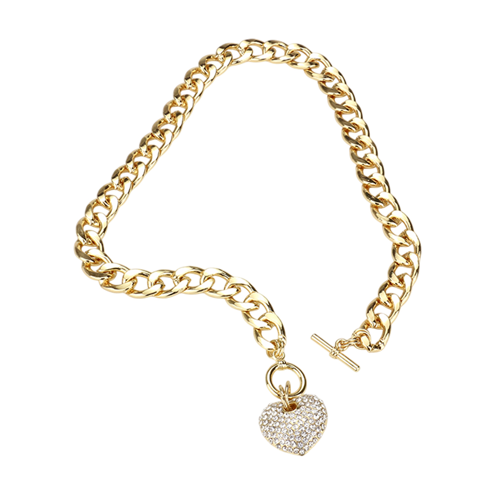 Rhinestone Pave Heart Pendant Toggle Necklace