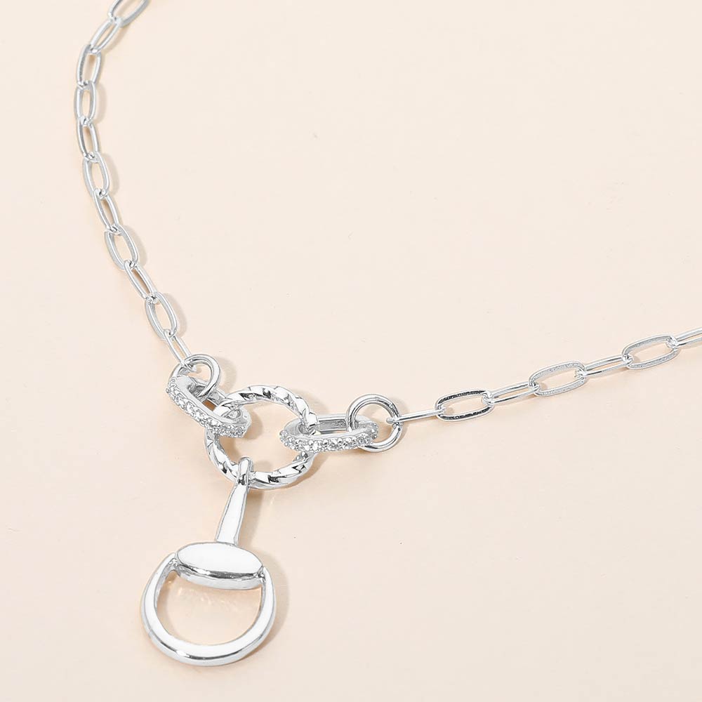 Rhinestone Paved Horseshoe Link Paperclip Chain Necklace