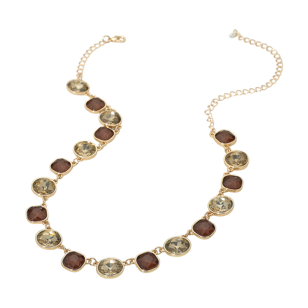 Round Square Stone Bezel Cluster Link Necklace