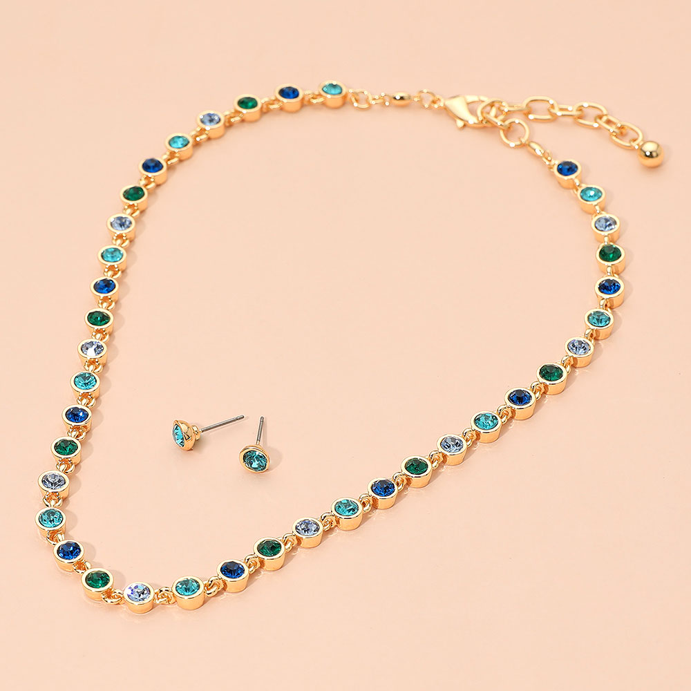 • Add a touch of sparkle to your style with this rhinestone necklace and stud earring set. Featuring dazzling stones in a refined design, this elegant duo offers timeless sophistication for both everyday wear and special occasions, enhancing any outfit with radiant charm.