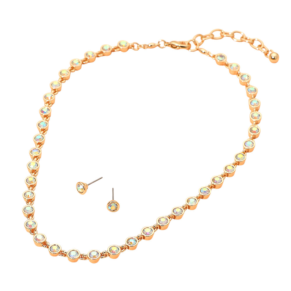 • Add a touch of sparkle to your style with this rhinestone necklace and stud earring set. Featuring dazzling stones in a refined design, this elegant duo offers timeless sophistication for both everyday wear and special occasions, enhancing any outfit with radiant charm.