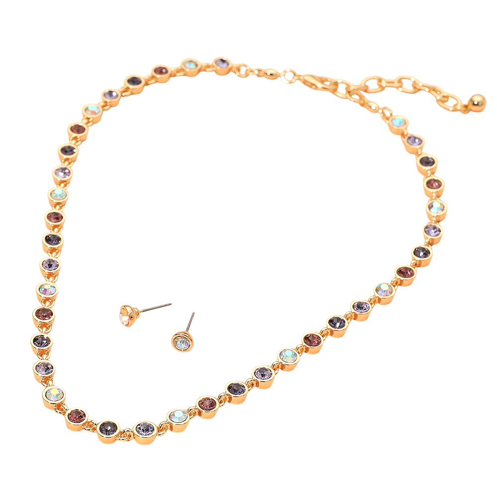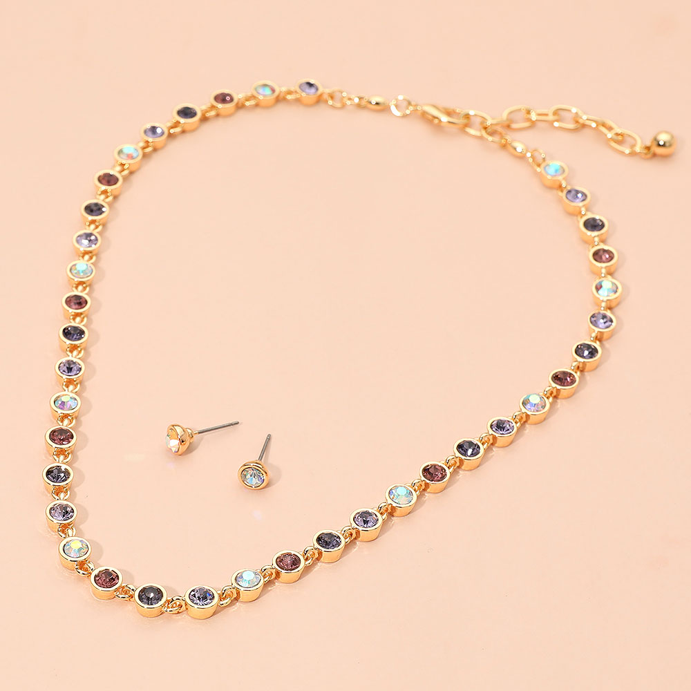 Details • Necklace Size : 16" + 2" L • Decor Size : 0.25" L • Earrings Size : 0.25" L • Add a touch of sparkle to your style with this rhinestone necklace and stud earring set. Featuring dazzling stones in a refined design, this elegant duo offers timeless sophistication for both everyday wear and special occasions, enhancing any outfit with radiant charm. • Lead and Nickel Compliant