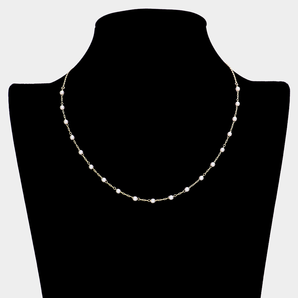 Details • Necklace Size : 16.5" + 2" L • Decor Size : 0.1" L • Elegant station necklace featuring small beaded accents evenly spaced along a fine chain for a minimal, timeless look. Ideal for layering or wearing alone, perfect for gifting and everyday style with its refined and versatile design. • Gold Dipped