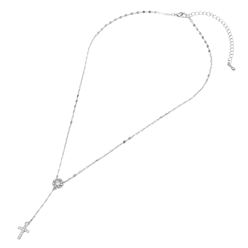 Details • Necklace Size : 16.5" + 2" L • Decor Size : 2" • Elegant drop pendant necklace featuring a refined cross charm suspended from a decorative chain design. Lightweight and comfortable with an adjustable length, it’s perfect for everyday wear, layering, and special occasions. A timeless accessory that adds meaningful style, ideal for gifting and polished, modern looks. • Sterling Silver Dipped • Hypoallergenic
