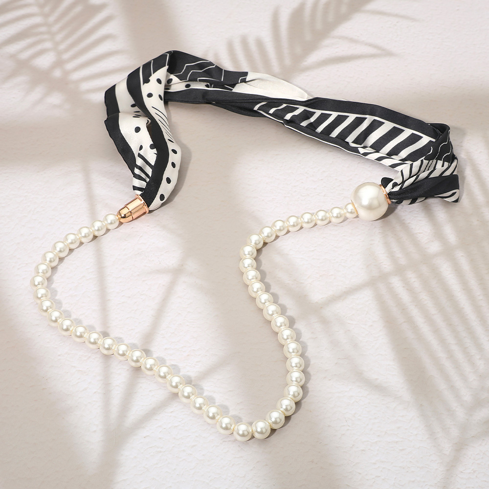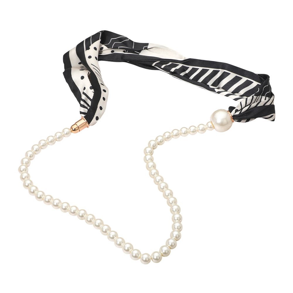 SECRET BOX_Pattern Print Fabric Scarf Pearl Magnetic Necklace