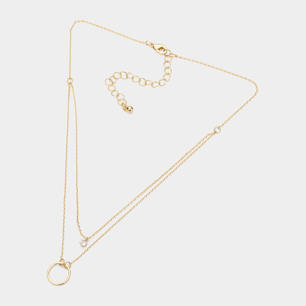 SECRET BOX_Stone Pointed Open Circle Pendant Brass Double Layered Necklace