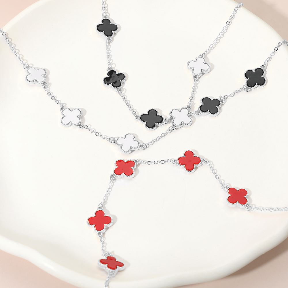• This delicate four-leaf quatrefoil pendant necklace features five charming motifs linked by a fine adjustable chain. Designed to embody elegance and luck, it offers a timeless appeal that enhances both casual and formal looks, making it an essential piece for everyday sophistication.