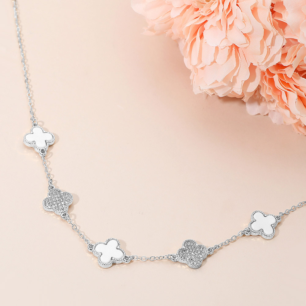 • Add refined elegance to any outfit with this clover charm necklace featuring alternating enamel and crystal-accented charms. Designed with a sleek chain and timeless motif, it’s a versatile piece that complements both casual and dressy looks with effortless sophistication.