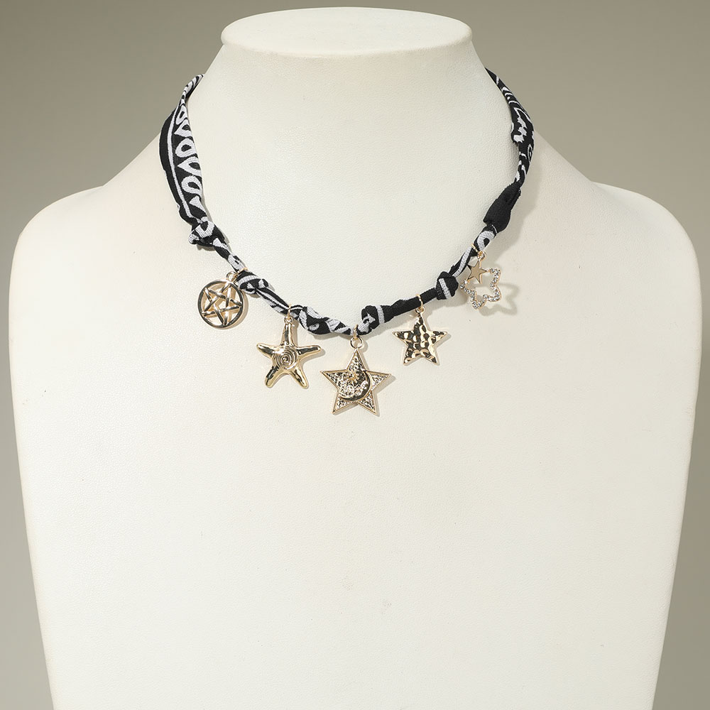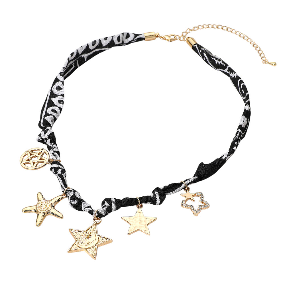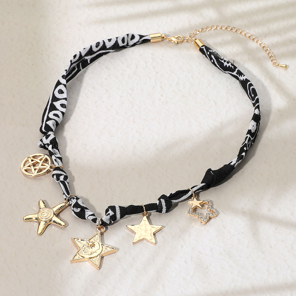 • Stylish bandana necklace featuring an array of star-shaped charms and a pentagram pendant. Adjustable fit makes it perfect for layering or wearing alone, adding a bold and celestial-inspired touch to casual, festival, or statement looks.