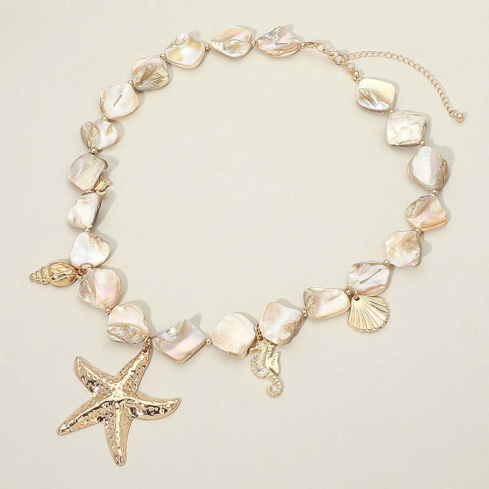 Starfish Seahorse Shell Charm Station Natural Shell Beaded Statement Necklace
