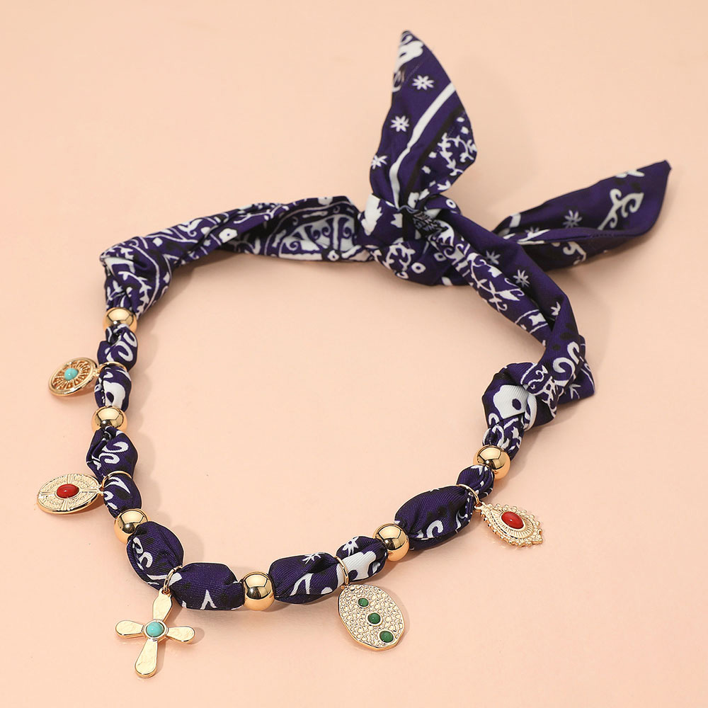 Stone Accent Boho Charm Station Fabric Scarf Adjustable Necklace