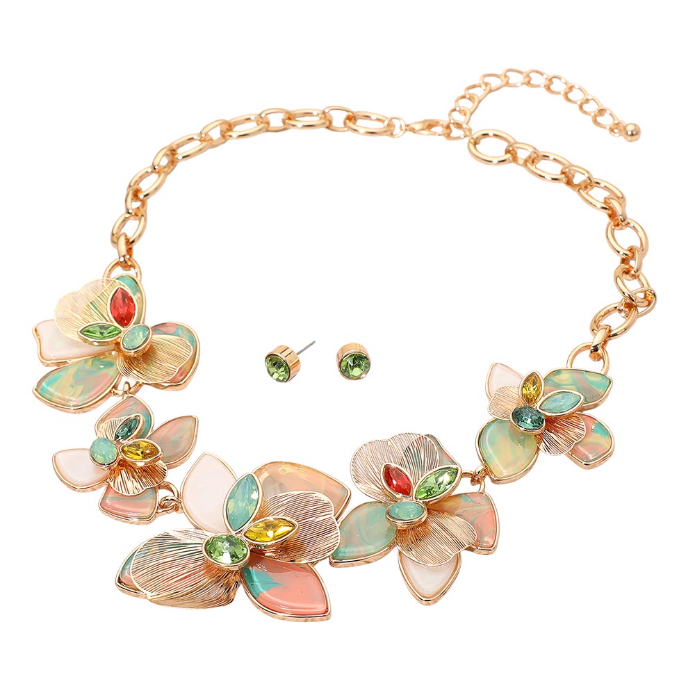 Stone Accent Resin Metal Cutout Floral Link Statement Necklace