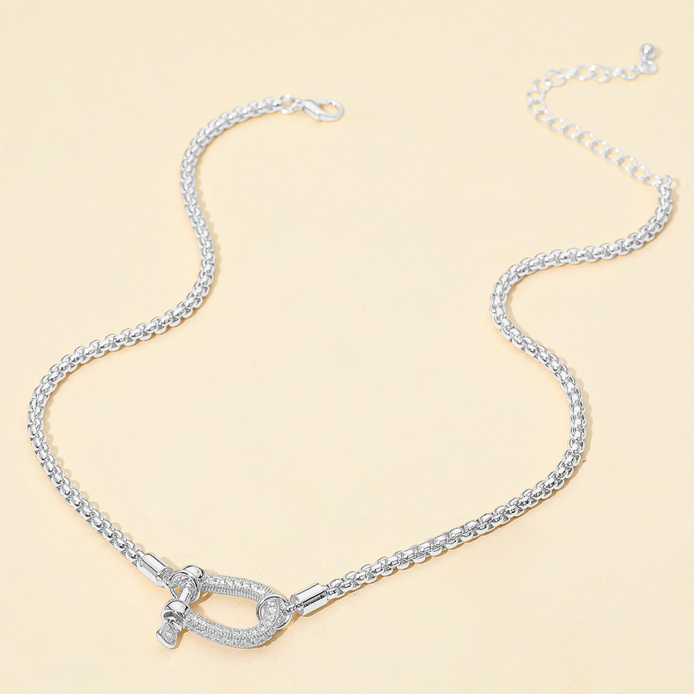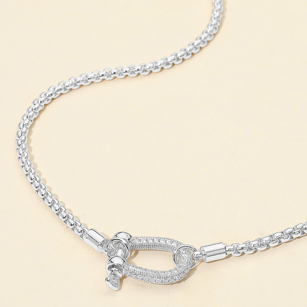 Stone Paved Horsebit Carabiner Pendant Link Box Chain Necklace