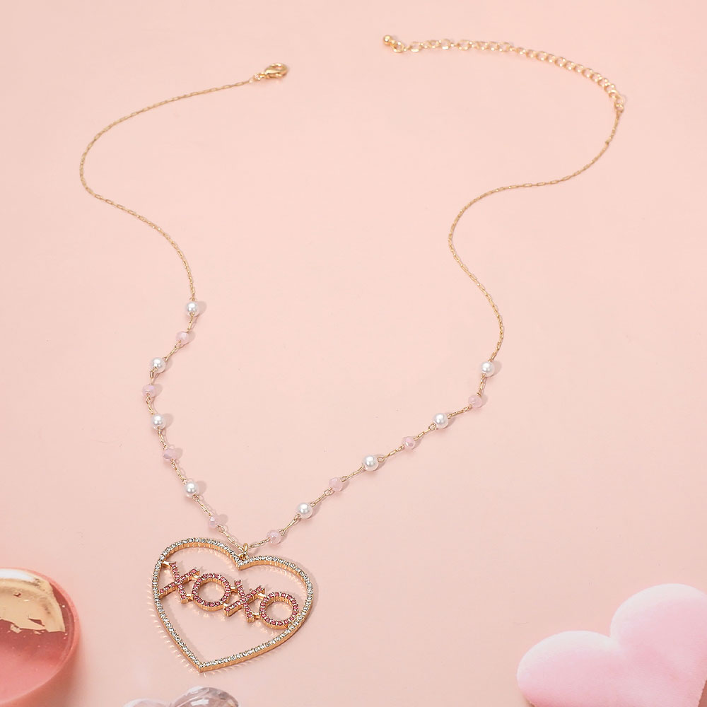 Stone Paved XOXO Heart Pendant Pearl Bead Station Chain Necklace Stone Paved XOXO Heart Pendant Pearl Bead Station Chain Necklace Stone Paved XOXO Heart Pendant Pearl Bead Station Chain Necklace
