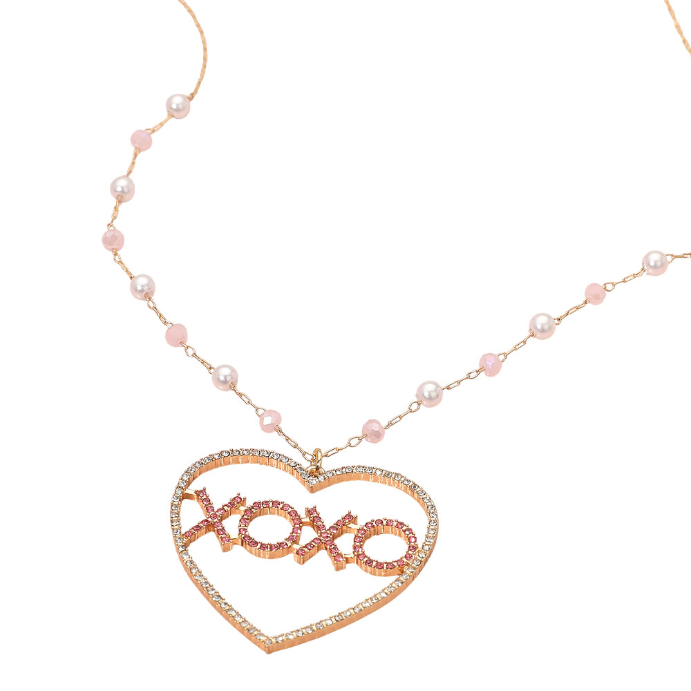 • Add a touch of romance to your look with this “XOXO” heart pendant necklace. The sparkling crystal-accented heart and delicate beaded chain make it a charming statement of affection. Perfect for everyday wear or as a meaningful gift, it radiates elegance and playful sophistication.