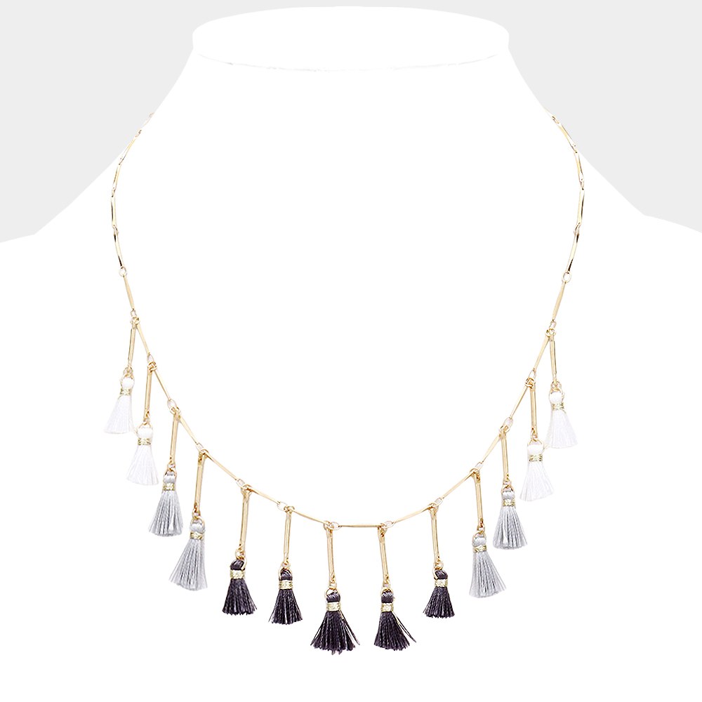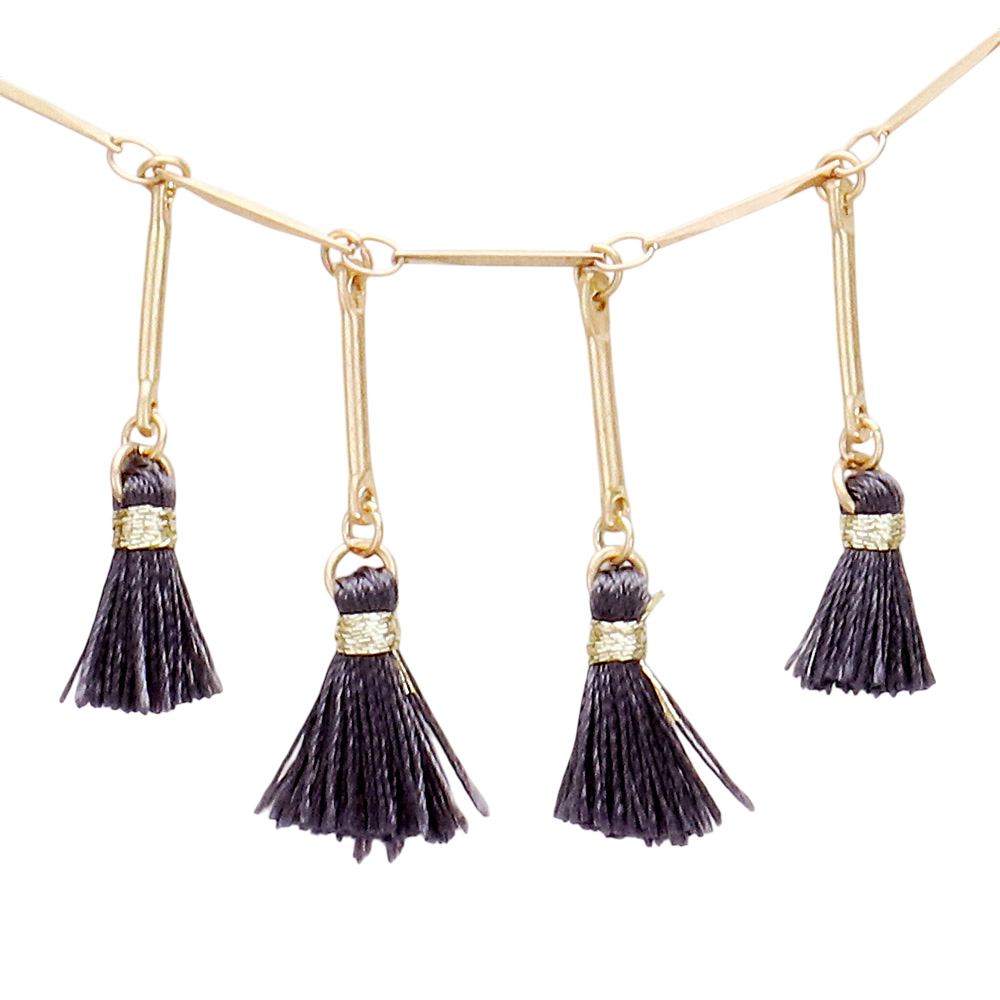 Seed Beaded Star Accented Rectangle Tassel Crossbody Bag