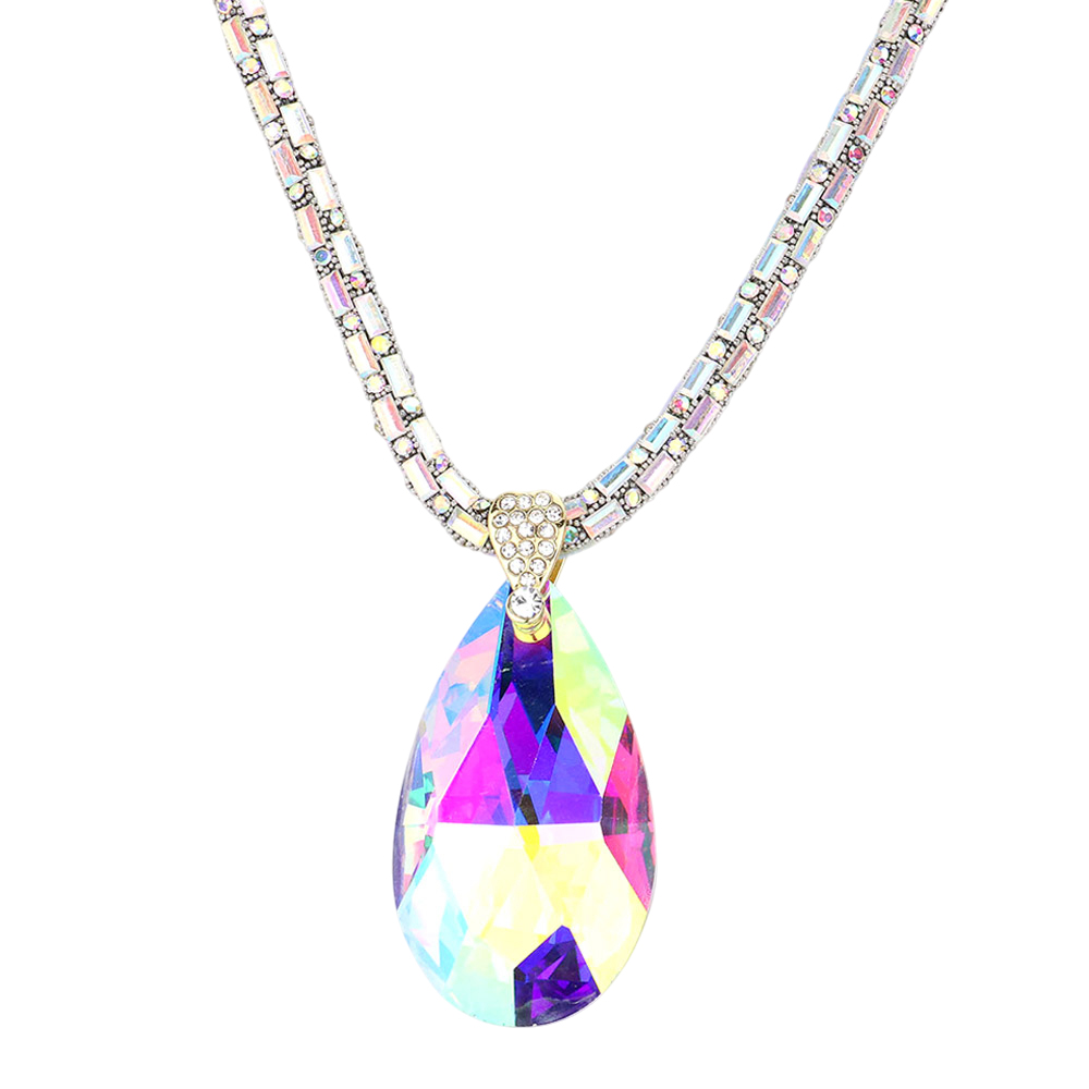 Teardrop Pendant Bling Necklace